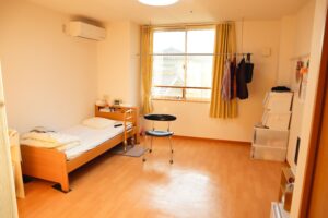 鉄骨造で低価格なのに、なんと18㎡の間取りでゆったり開放的な作り。居室にはトイレも完備。自宅からの荷物を持込み可能で、なじみのある環境を再現できる。
