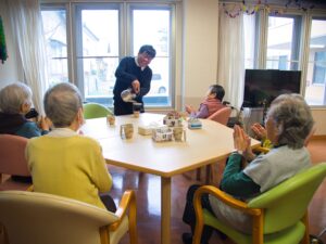 地域密着型通所介護は半日型でサロンのようなゆったりとした雰囲気。デイサービスでの活動と居室への訪問介護を受けることで安心して生活することができる。